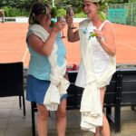 Een aantal deelneemsters viel in de sportieve prijzen, maar ook de winnaar van de quiz en de best verklede deelneemsters ontvingen mooie prijzen (nogmaals dank aan onze sponsoren!). De overige speelsters kregen een sportbidon met ingestraald water, zéér heilzaam voor allerlei kwalen zoals tennistenen, backhandblues en scheelzien bij smashen (voor een optimale werking het water drinken bij maanlicht).Na de prijsuitreiking was het de hoogste tijd om even uit te puffen onder het genot van een drankje en een borrelhapje. Wij vonden het enorm gezellig! Tot volgend jaar!